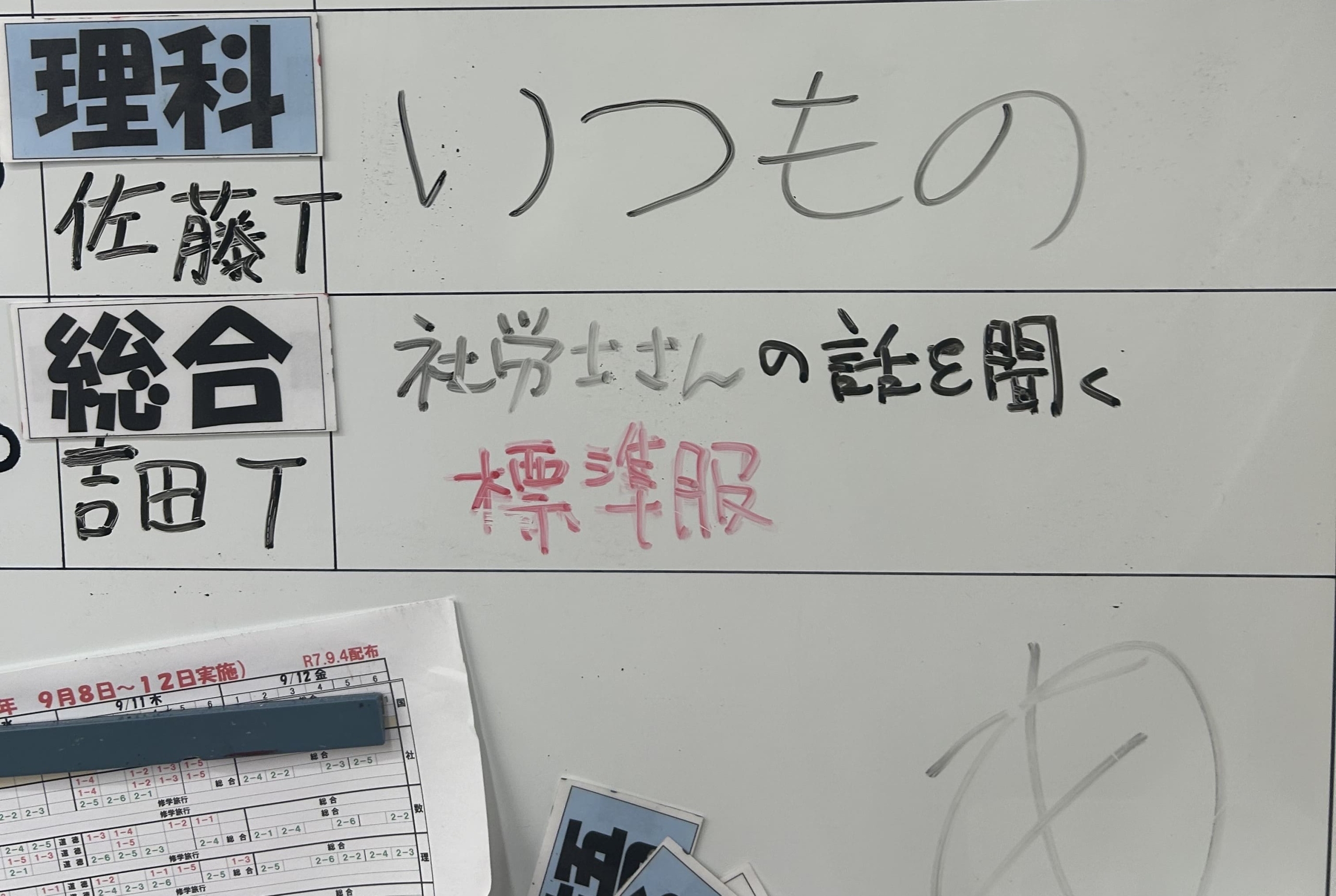 意見をホワイトボードに書き出して発表する場面では、どんな考えが出るのかを生徒と同じようにワクワクしながら見守ることができ、クラス全体が学びの空気に包まれていました。
