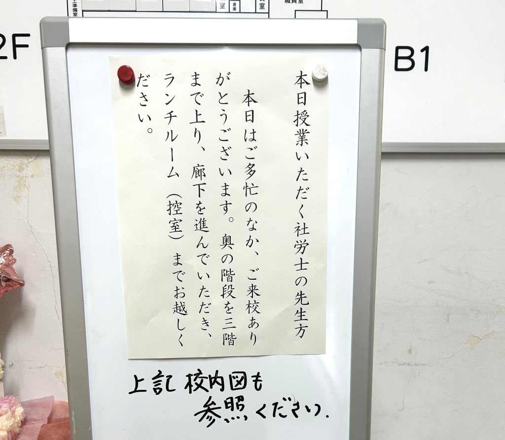 2025年10月6日、高島第一中学校の8年生に向けて職場体験前の出前授業を行いました。玄関に案内掲示をしていただき、矢印に従って進むと控室を準備していただいていました。お忙しい中ご準備いただいた校長先生、学年主任の先生、担任の先生方、有難うござ... -