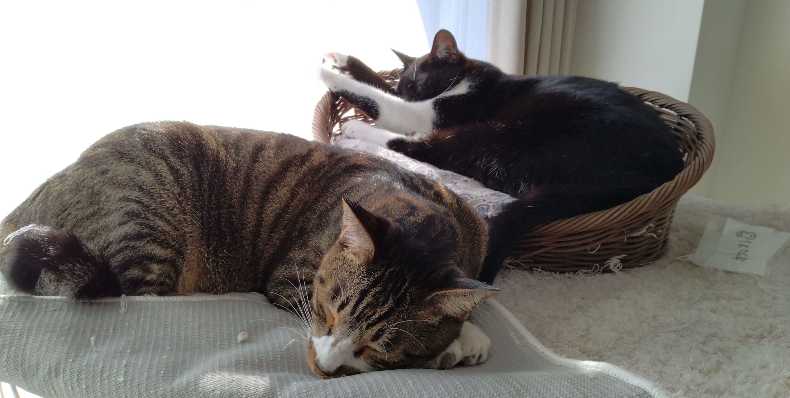 朝夕、餌や水を用意し、トイレの始末をし、ほぼ爺や状態です。撫でろと言われて撫でて、撫で方が気に入らないと噛んできて、こちらが撫でたいときには無視をして、それでも良いのです。寝ている上を走っていきますが問題ありません。エアコンつけっぱなしで電気代が恐ろしいですが良いのです。こんな猫生活を始めてもう一年以上が経ちました。爺や業務が待っているので夜は早く帰らねばならず、付き合いが悪くなっていますがご容赦ください。なにせ、猫ファーストなので。